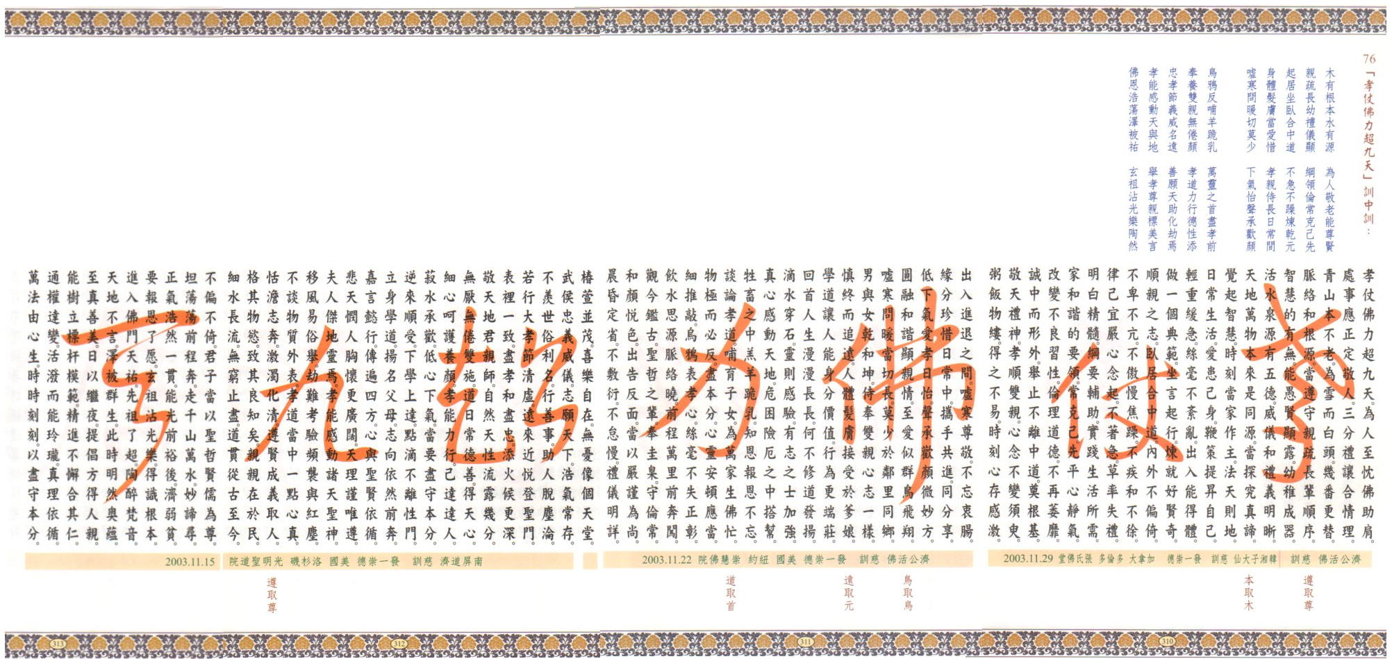 《百孝經聖訓》之諸仙佛菩薩的訓文,句句醒思成為我們所相信,你要相信孝順是超越你的生命達到更高層次:「我昨日的孝順造就了今日的我,而明日的我會成為今日我所孝順的。」真是一句有力的話啊!這些你必須去做才得相信,沒錯!