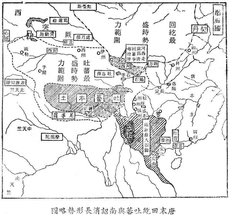 唐末回紇吐蕃與南詔消長形勢略圖