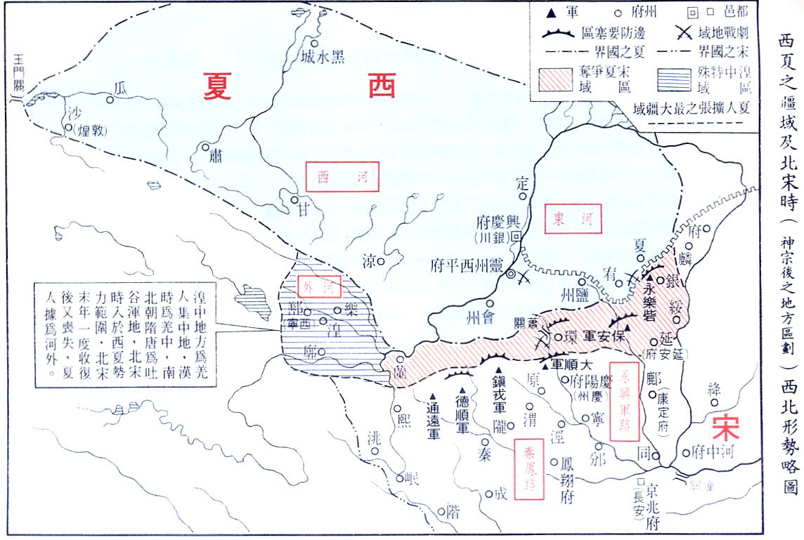 西夏之疆域及北宋時(神宗後之地方區劃)西北形勢略圖