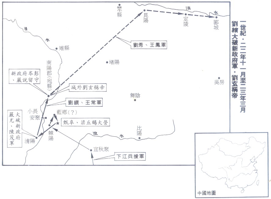一世紀•22年11月至23年3月 劉縯大破新政府軍•劉玄稱帝