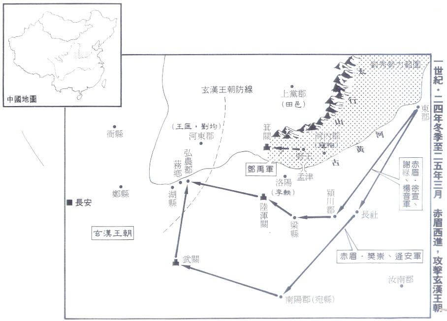 一世紀•24年冬季至25年3月 赤眉西進,攻擊玄漢王朝