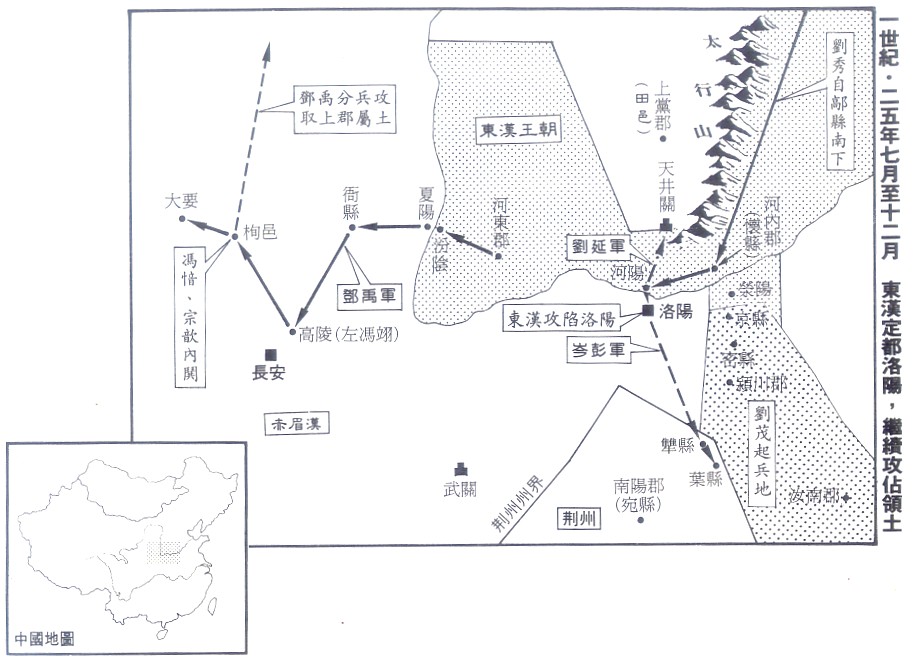 一世紀•25年7月至12月 東漢定都洛陽,繼續攻佔領土