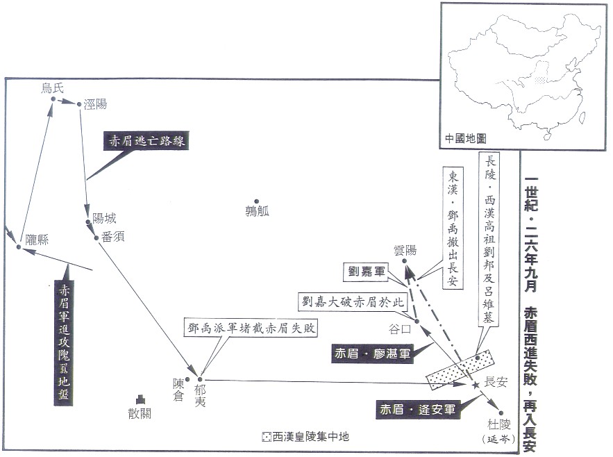 一世紀•26年9月 赤眉西進失敗,再入長安