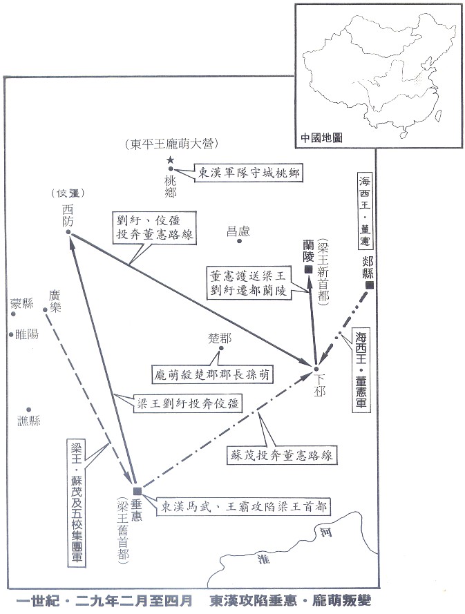 一世紀•29年2月至4月 東漢攻陷垂惠•龐萌叛變