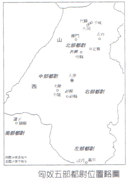 曹魏時期匈奴五部都尉位置略圖
