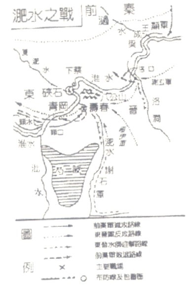 西元383年淝水之戰形勢略圖