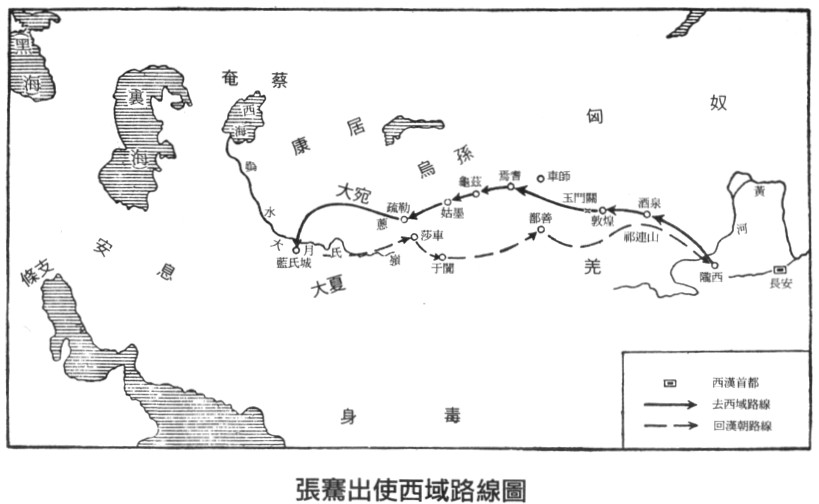 張騫出使西域路線圖