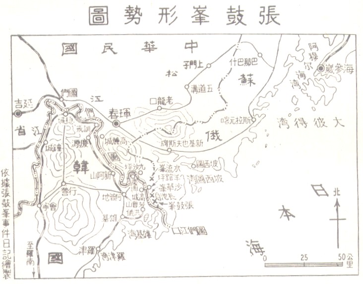 按:1938年7月12日,日方報紙大幅刊出蘇聯兵士侵入「滿洲國」的琿春,「滿洲國」政府業向蘇聯當局提出嚴重抗的消息。但蘇聯塔斯社否認俄軍越入偽滿邊境,並明白告知日方,所稱蘇兵入侵佔據之地,依據1886年中俄條約,乃係蘇聯領土。7月18日,日本外務省發言人宣布,日本邊防兵1名7月15日再琿春雙方爭執區被蘇兵擊斃,要求蘇軍撤退,如不撤退,則形勢日趨險惡,蘇聯應負全責。 7月22日至8月6日,雙方在6公里戰線上,蘇聯出動軍隊5萬人,坦克車250輛,飛機300架,日軍人數亦相當,且連同偽滿軍,數量或有過之,雙方對峙衝突,蘇方砲火猛烈,每小時炮擊400發,整日24小時不停,故雙方損失亦以日方較為慘重。8月11日12時,日蘇正式成立協定,雙方停止攻擊,邊界問題另有雙方代表開會商討,張鼓峰事件,至此遂成懸案,暫時擱置。