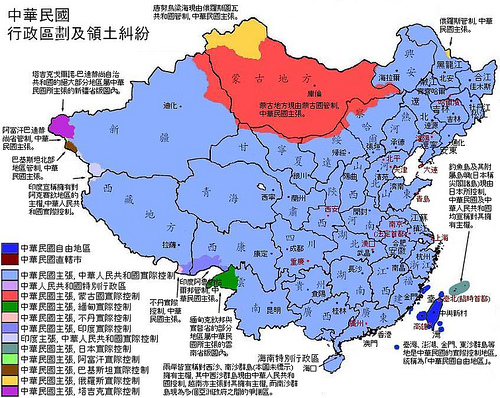 資料來源:<http://www.flickr.com/photos/shenao/3256159952/sizes/m/in/photostream/>。 說明:在民國81年07月31日公布的「臺灣地區與大陸地區人民關係條例 」(簡稱兩岸人民關係條例)中,所指的大陸地區係指臺灣地區以外之中華民國領土;既是如此,大陸地區所含的政治實體除了「中華人民共和國」外,?應含「蒙古國」與俄羅斯「圖瓦共和國」。
